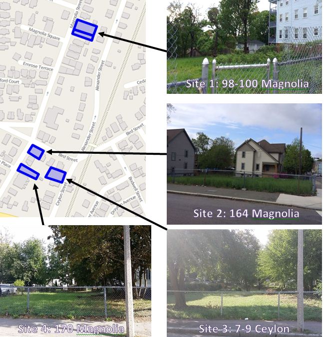 Five parcels of vacant City owned land are planned to be developed into 5 new one and two-family homes, resulting in 9 new housing units. 6 of these units will be homeownership units and 3 will be rental units. Construction is scheduled to start in the Spring of 2019.