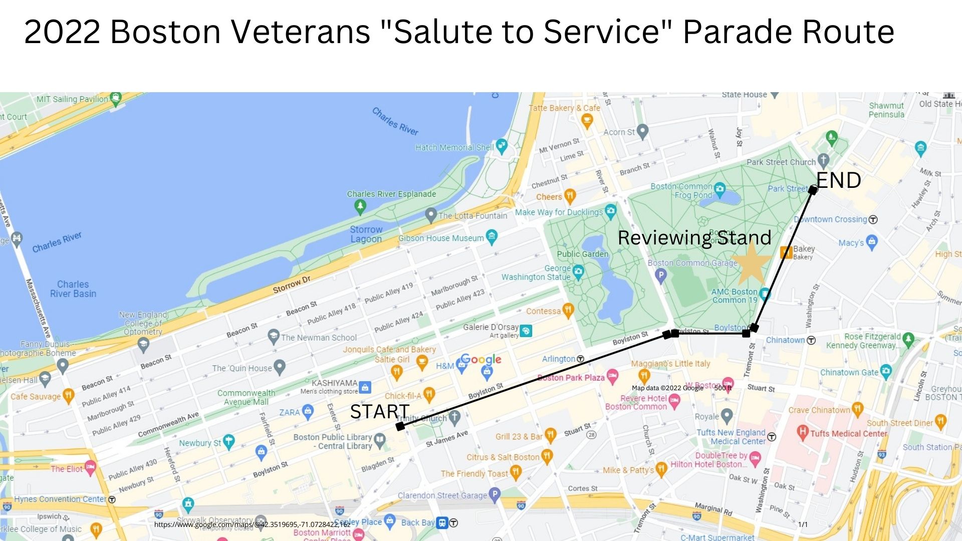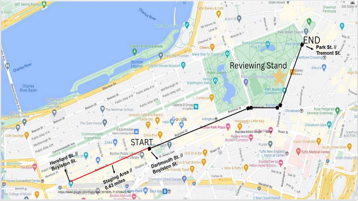 The Parade will begin at Boston Public Library located on Boylston Street and marching to the corner of Park and Tremont St and end at 1 City Hall Plaza. This is a new and exciting parade designed to honor the service and sacrifice of veterans and their families, as well as a thank you to all who continue to serve. We are seeking veteran, military, and civic organizations as well as musical groups to headline this all-star salute to service.