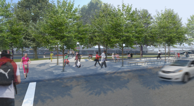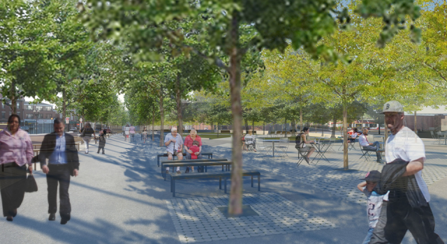 - widening the sidewalks to create spaces for outdoor seating, cafes, and greenscape elements.