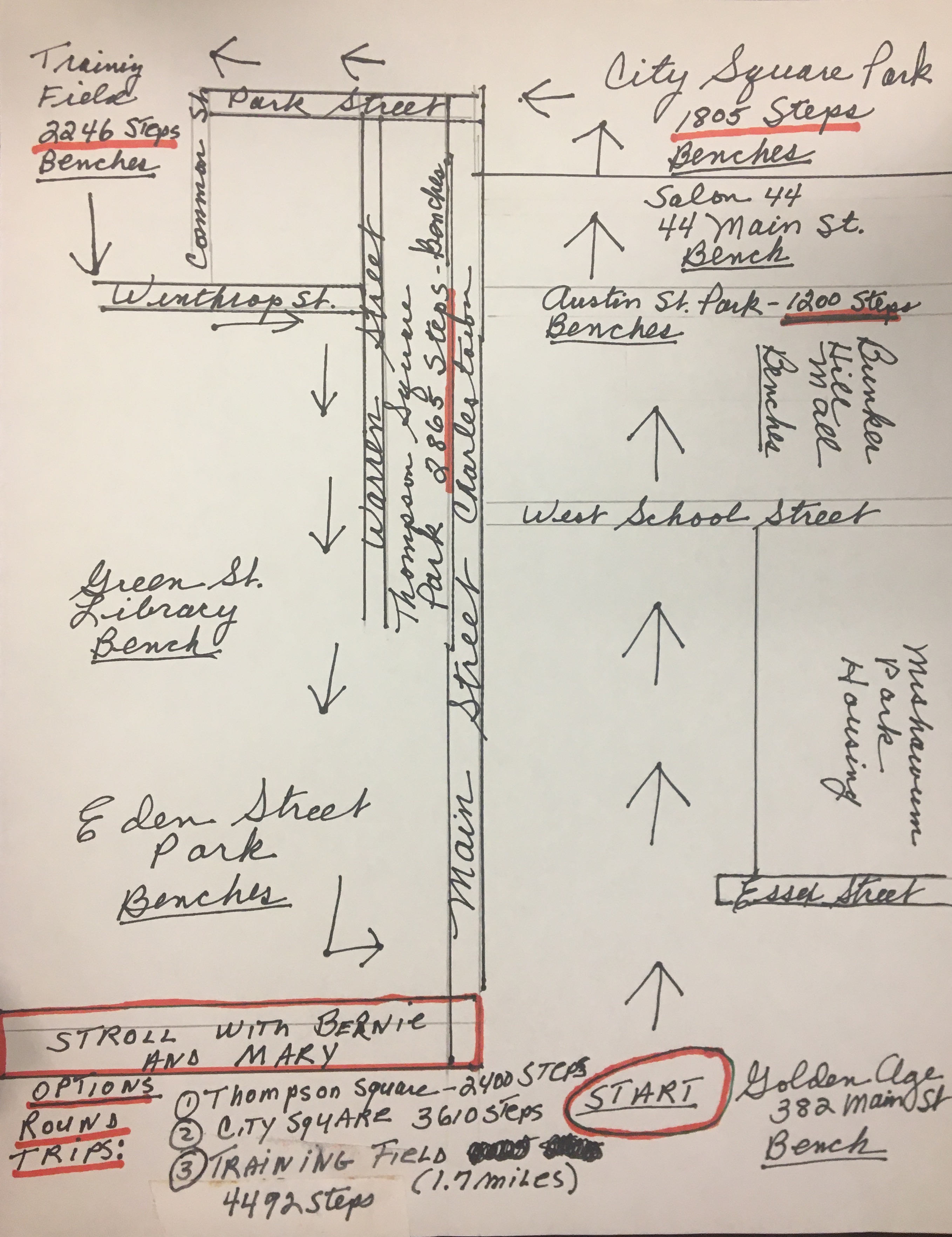 Outdoor walks are considered "age-friendly" because the City of Boston plows them in the winter. The paths are also smooth, free of stairs, and parking is nearby. You can view the map and list of locations below.