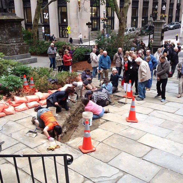 In 2015, City of Boston Archaeologists and volunteers dug trenches looking for evidence of 17th century buildings.