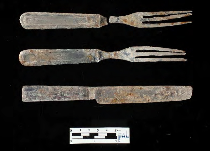 Two forks from after 1869 and a knife recovered from hull of the Seaport Shipwreck. (Image credit: Public Archaeology Laboratory, Inc.)