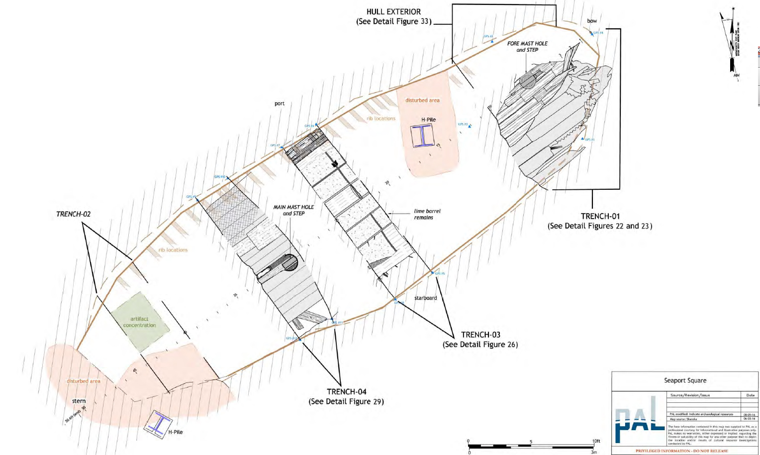 Plan drawing of Seaport Shipwreck remains. (Image Credit: Public Archaeology Laboratory, Inc.)