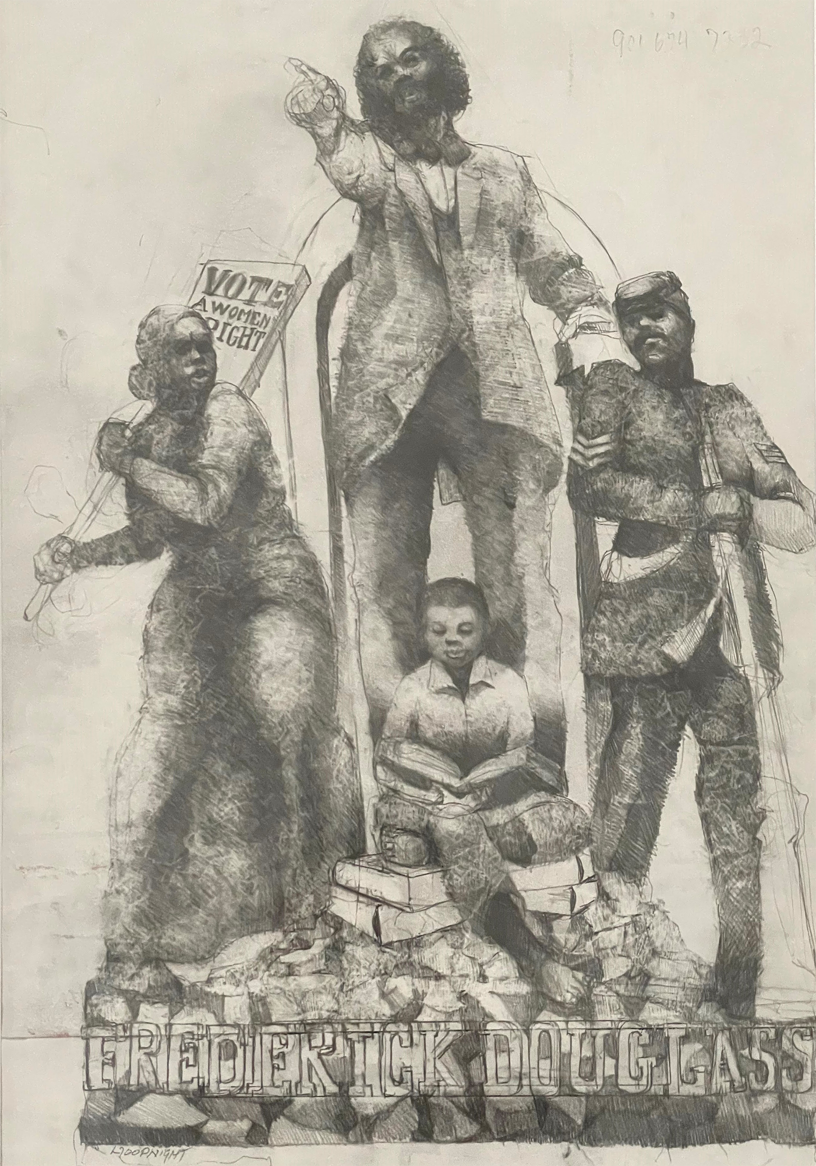 The bronze memorial will feature Douglass pointing the way ahead. Sculptor Mario Chiodo designed the artwork based on a drawing by Roxbury painter Paul Goodnight. Symbolic figures of the Black community’s fight for equal rights will surround Douglass, including: