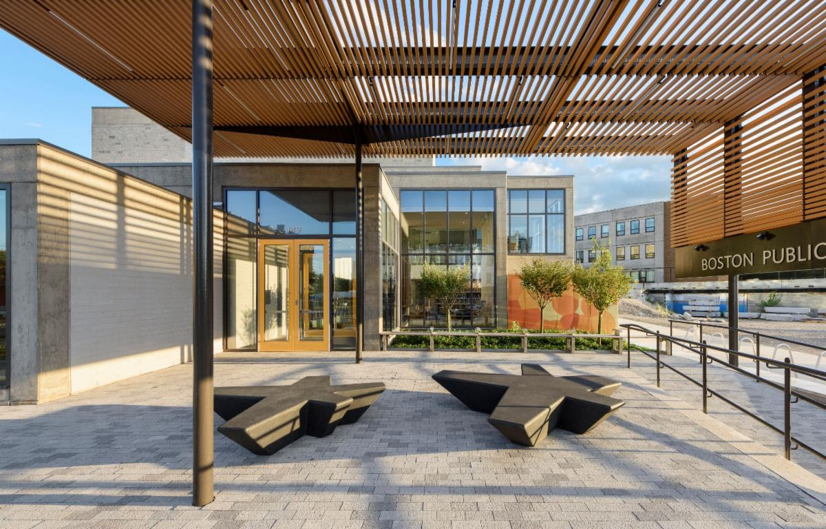 A relocated entry and plaza improvements along Dudley Street will also improve the civic presence of the library. This will help connect the library to the neighborhood and make it more welcoming.