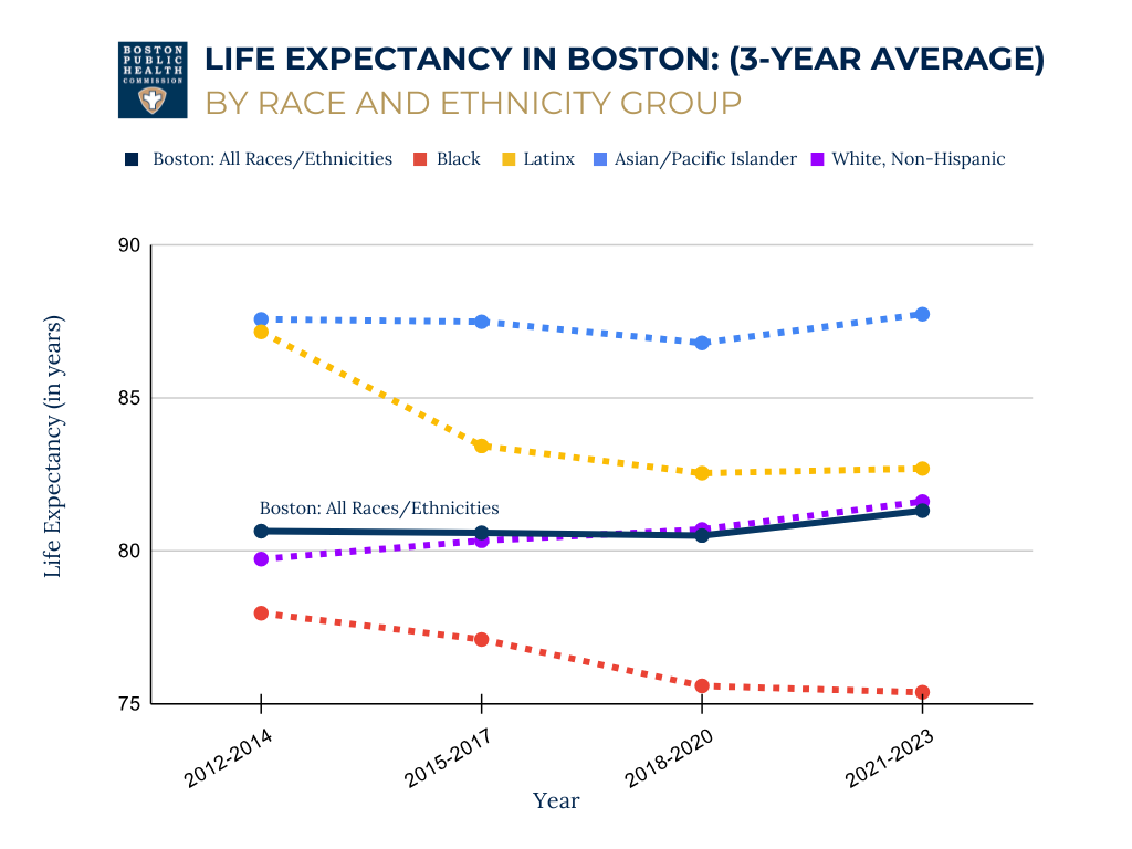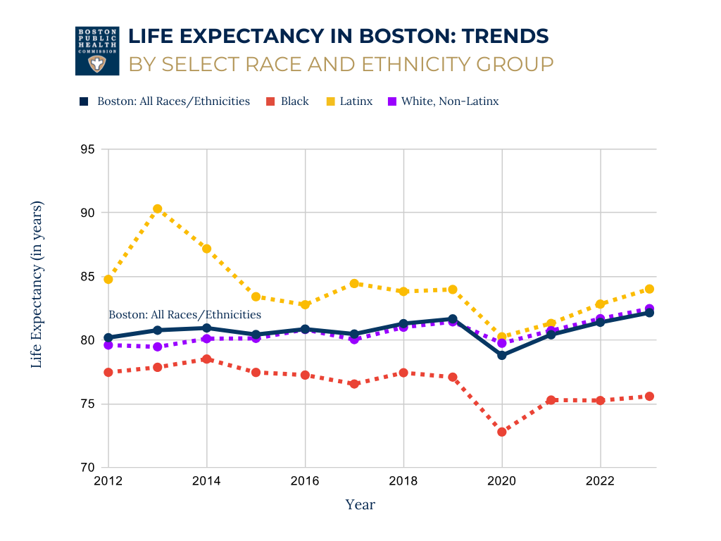 Boston is a vibrant, diverse, and thriving city. But, it is also a city with persistent and troubling health inequities. Data show that life expectancy varies sharply across communities and neighborhoods in Boston. These disparities are primarily due to social, economic, environmental, and structural factors.
