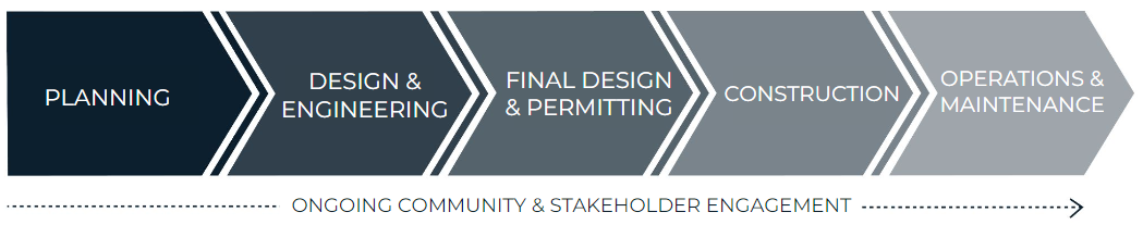 - Design & Engineering includes refining the conceptual strategy through site investigations (such as land surveys), engineering assessments, and detailed design drawings.