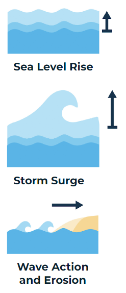 Coastal Flood Risk- Sea Level Rise refers to the rise in sea level over time relative to the land at a given location, primarily due to heat-trapping greenhouse gases that are absorbed by the ocean. As this heat is absorbed, ocean temperatures rise, polar ice melts, and water expands.