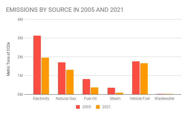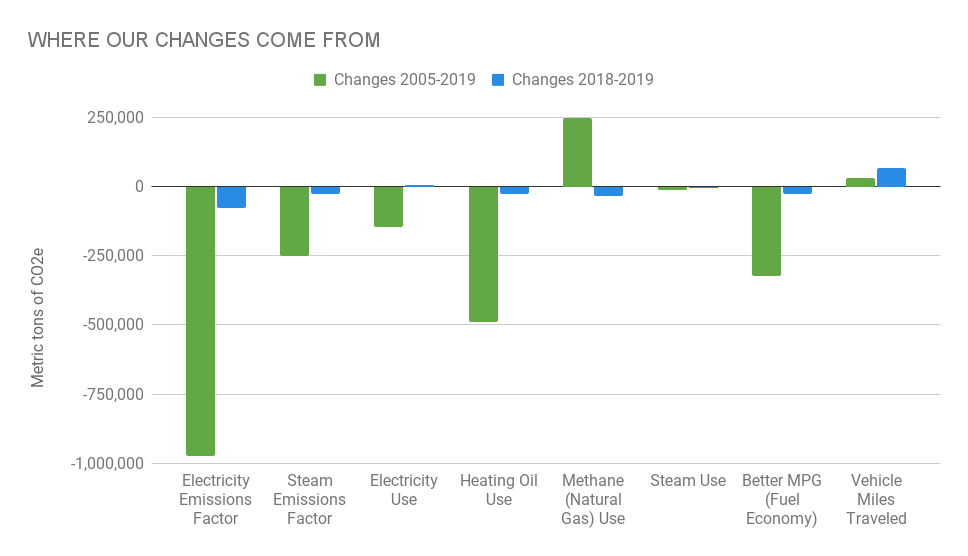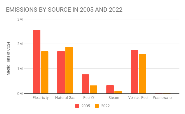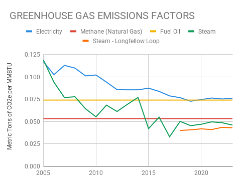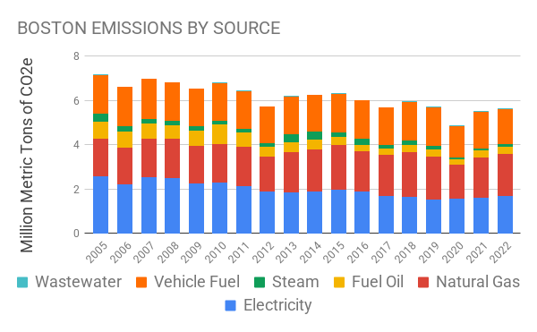 - Incorporated newly published ISO-NE emissions factors that account for imported electricity from New York and Canada, providing a more accurate reflection of the carbon intensity of electricity consumed in Boston. These updated factors have been applied retroactively to 2005, resulting in a revised emissions baseline.