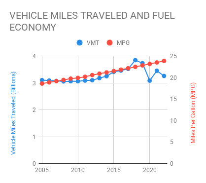 - Boston vehicle miles traveled (VMT) decreased by 5% from 2021 to 2022. After a sharp post-pandemic increase of 12% from 2020 to 2021, VMT remains lower than pre-pandemic levels.