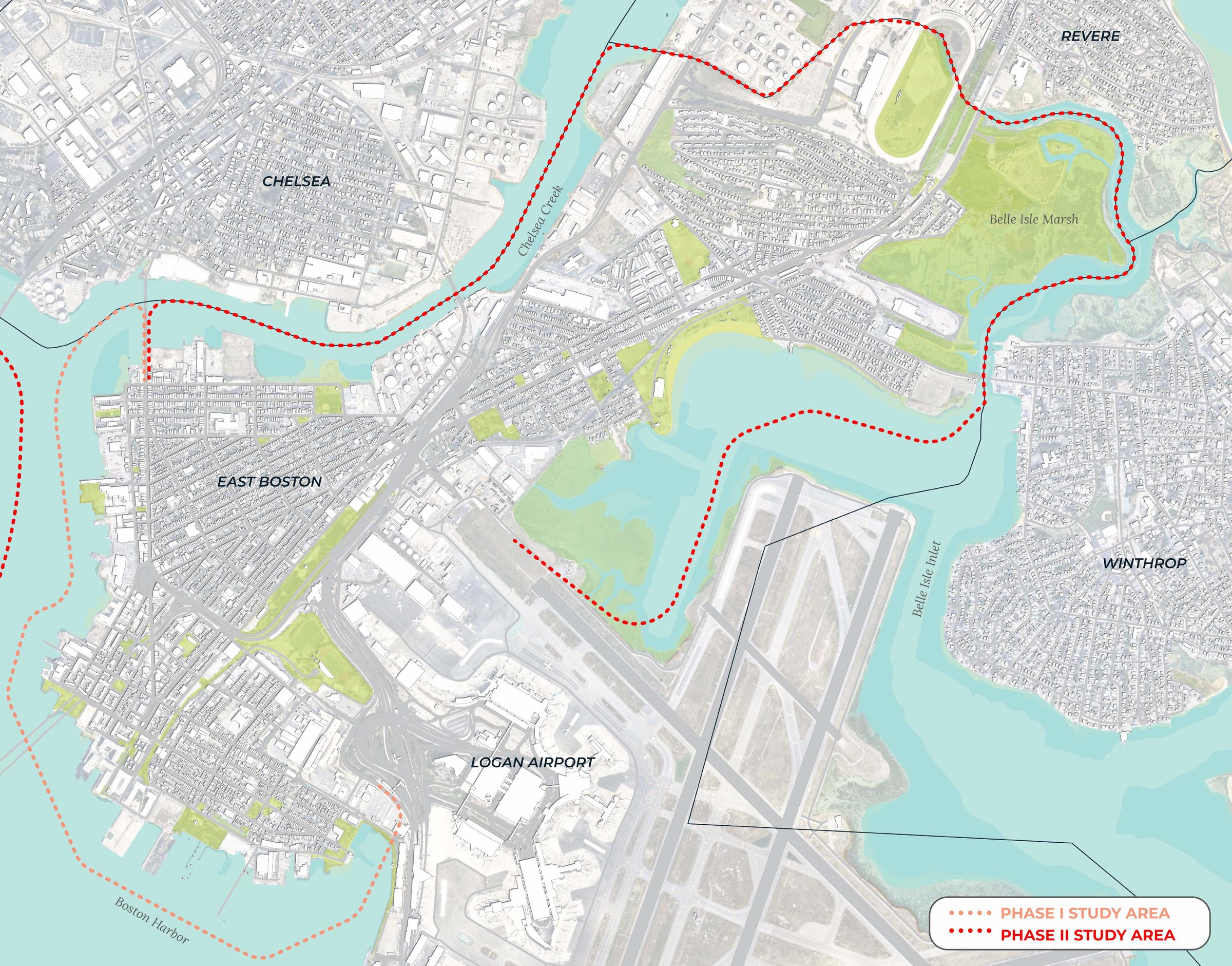 The Phase I plan was completed in 2017 and studied the waterfront from Sullivan Square to the Boston Autoport in Charlestown, and the waterfront from Logan Airport to Chelsea Creek in East Boston.