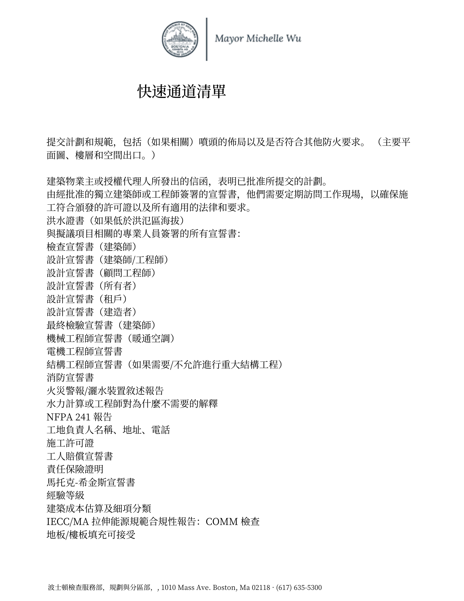 “The Fast Track program is one way we’re working to streamline city processes and make it easier to do business in Boston,” said Mayor Michelle Wu. “By creating expedited approvals for qualified projects, we hope to save time and expenses through a more predictable and friendly customer service experience with permitting.”