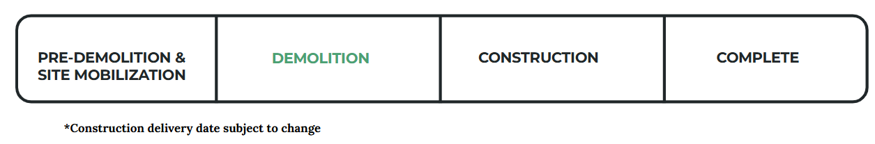 Demolition Phase: Expect increased construction activity during demolition over the next two months. We will share more information about subsequent phases in the coming weeks. During this time: