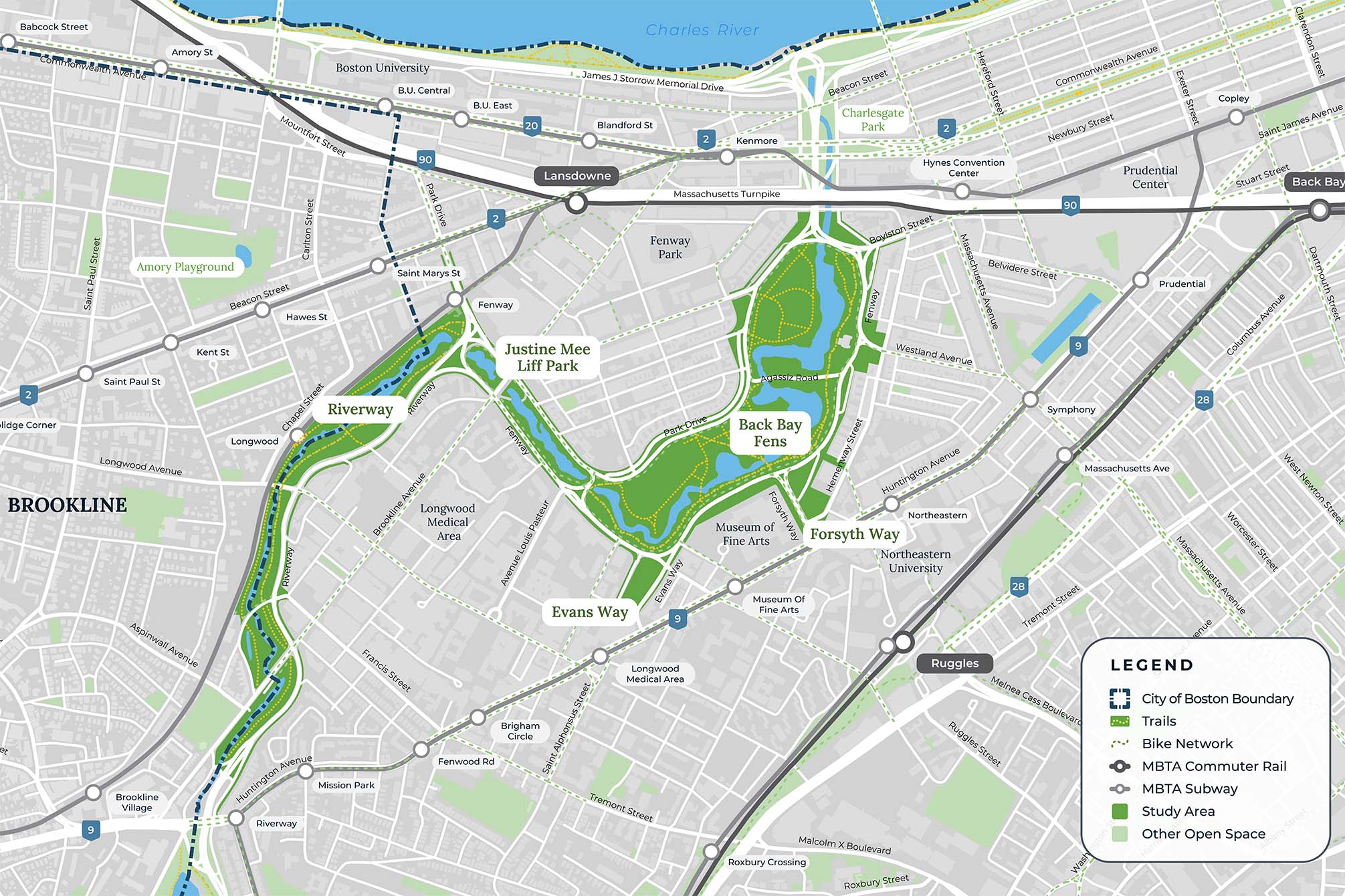 Common questionsThis project is looking to develop an evidence-based understanding of sunlight and shadow on parkland, starting with this portion of the Emerald Necklace. By starting with one study area, we're better able to test ideas and verify their accuracy. This parkland has a variety of landscape types, programming, and development pressures. The goal is to conduct this research so that the findings are also applicable to other parks in Boston.