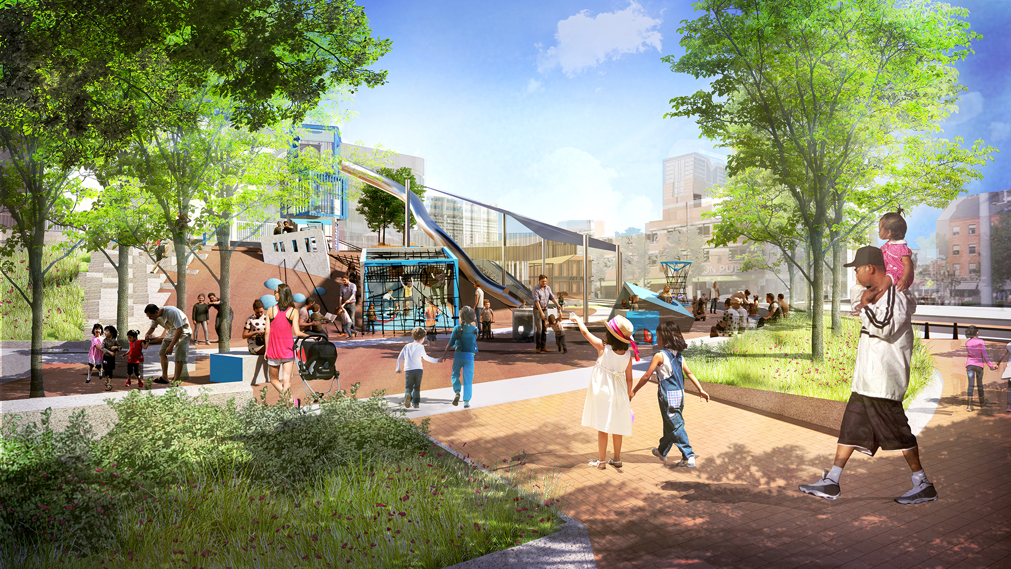 - 11,000 square feet of terraces for pop-up play and interactive public art.