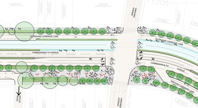 We also plan to redesign the Commonwealth Avenue and Harvard Avenue intersection. This will be the centerpiece of our project. Our goal is to revitalize this busy commercial and transit hub. We want to maximize pedestrian space and amenities.