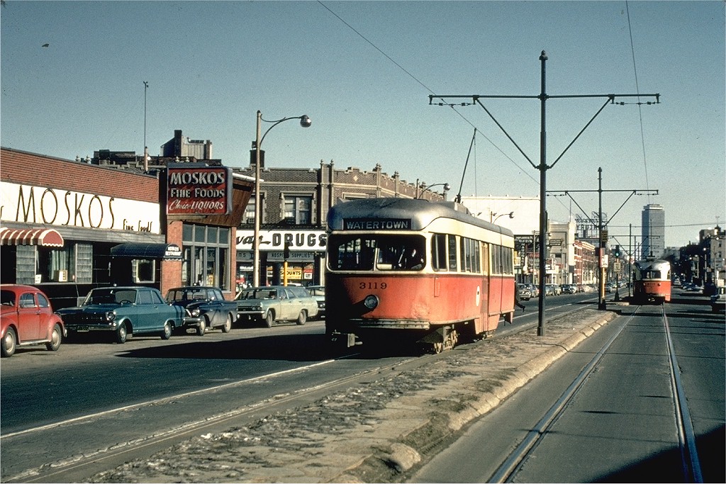 - was street-running, mixed with traffic, between Packards Corner and Watertown Yard.