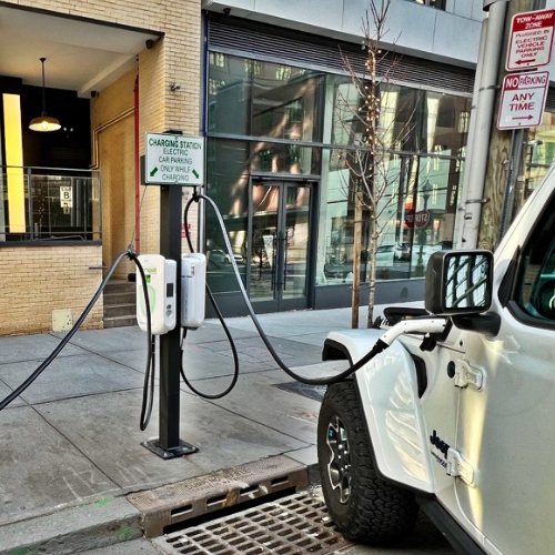The City is installing electric vehicle (EV) charging ports at curbside locations throughout the city. In addition, the City is partnering with private companies to install and operate EV charging ports, increasing the number of EV charging ports available to the public.