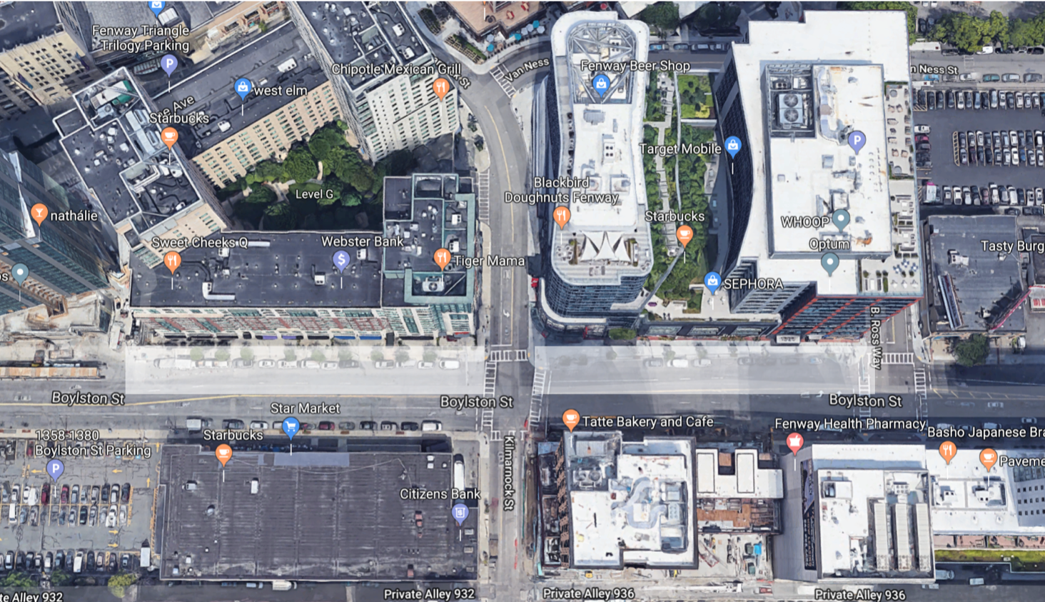 The pilot took place in the Fenway, on the northside of Boylston Street near Kilmarnock Street.