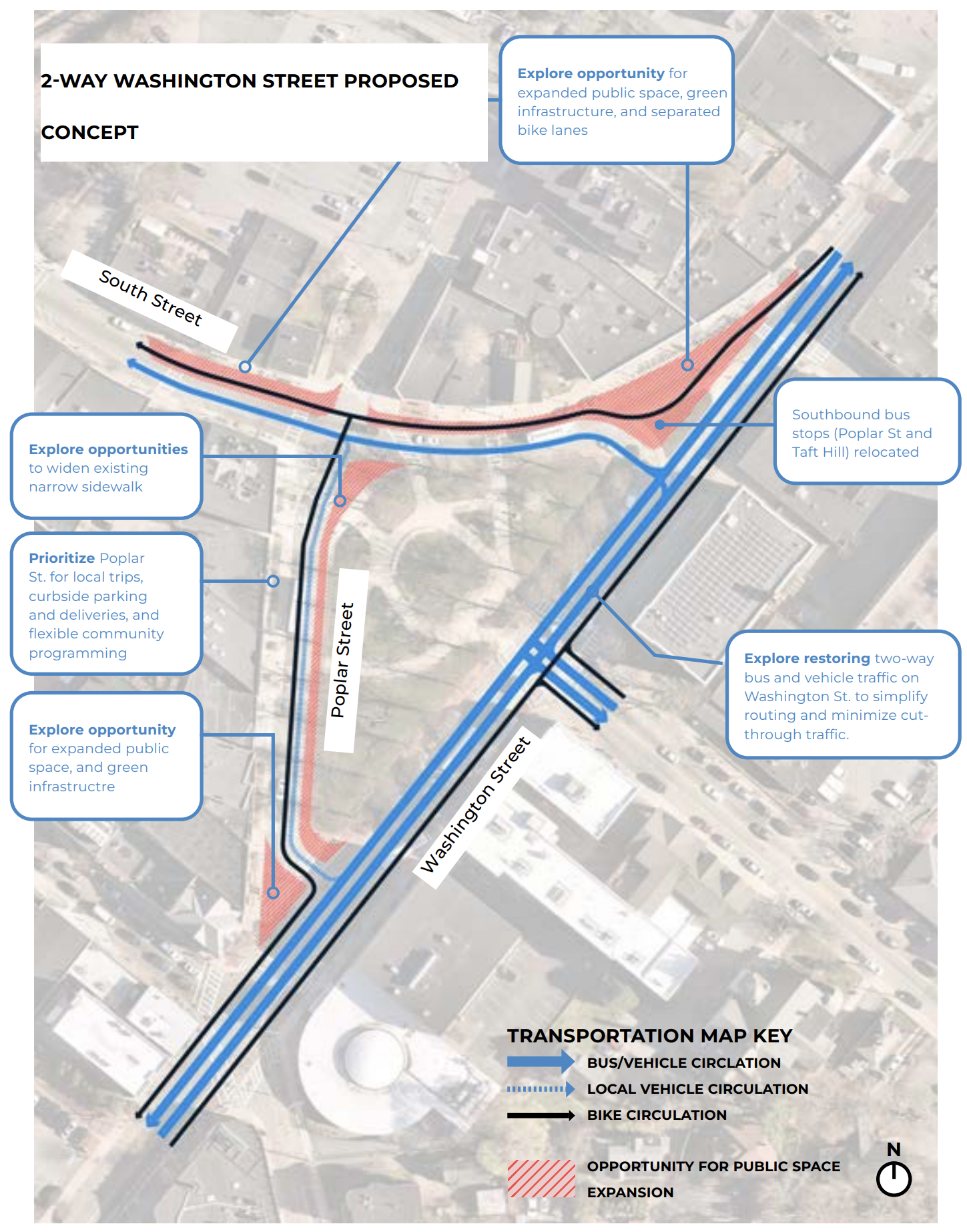 The adopted Squares + Streets plan made a series of transportation recommendations. Now, the Streets Cabinet - who designs and builds our streets - is picking up those recommendations for further evaluation and advancement. Through this project, it's possible we'll refine, tweak, or even abandon some of the recommendations as we get into detailed design. We might take up other ideas in our project area to make it safer and more pleasant to travel and linger in the square. As we have design proposals, we'll look forward to sharing them with the public.