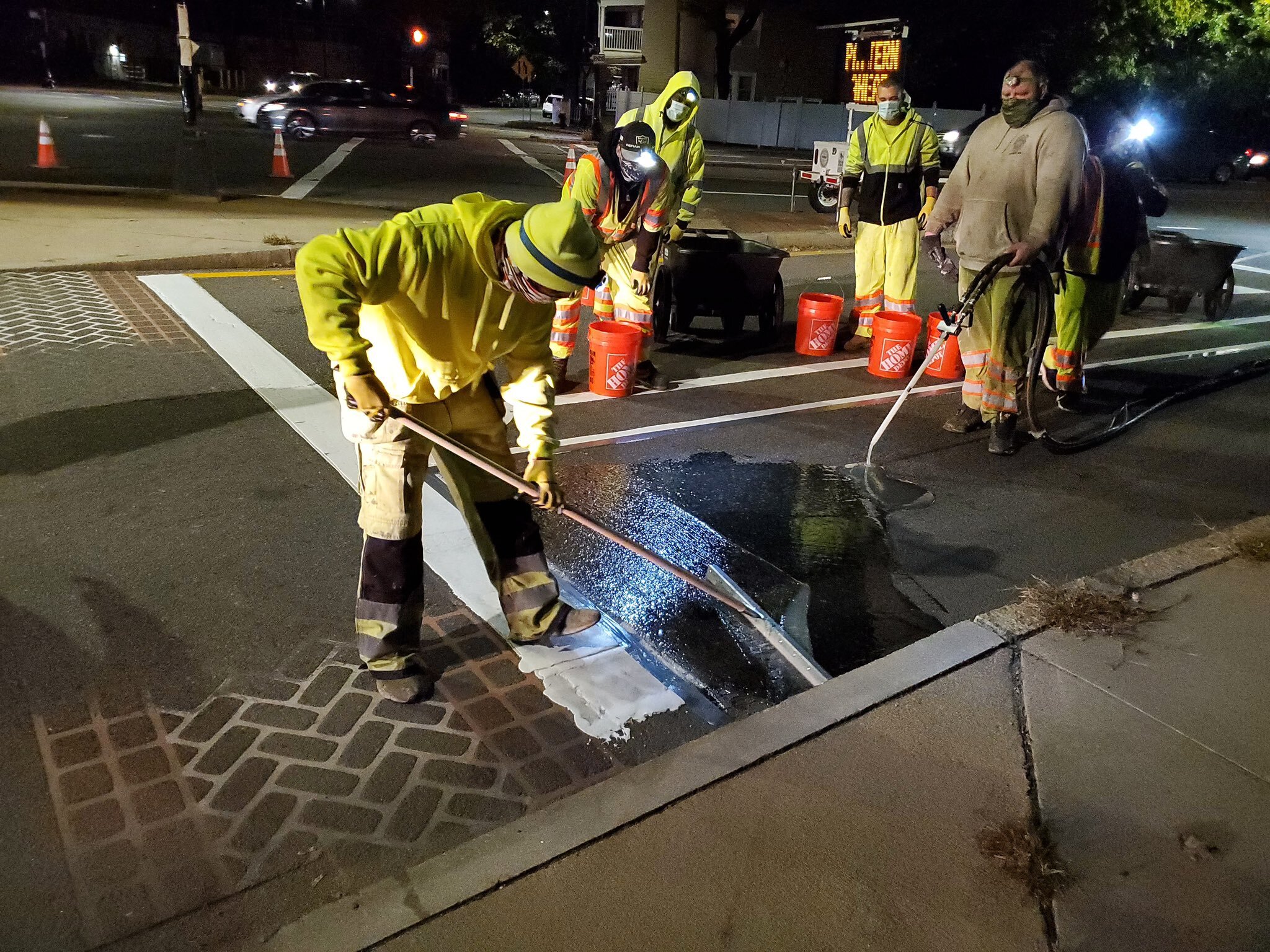 In October 2020, we updated our plans based on your feedback. We began removing the old pavement markings and installing new ones. We added green paint and bike symbols to the new bike lanes.