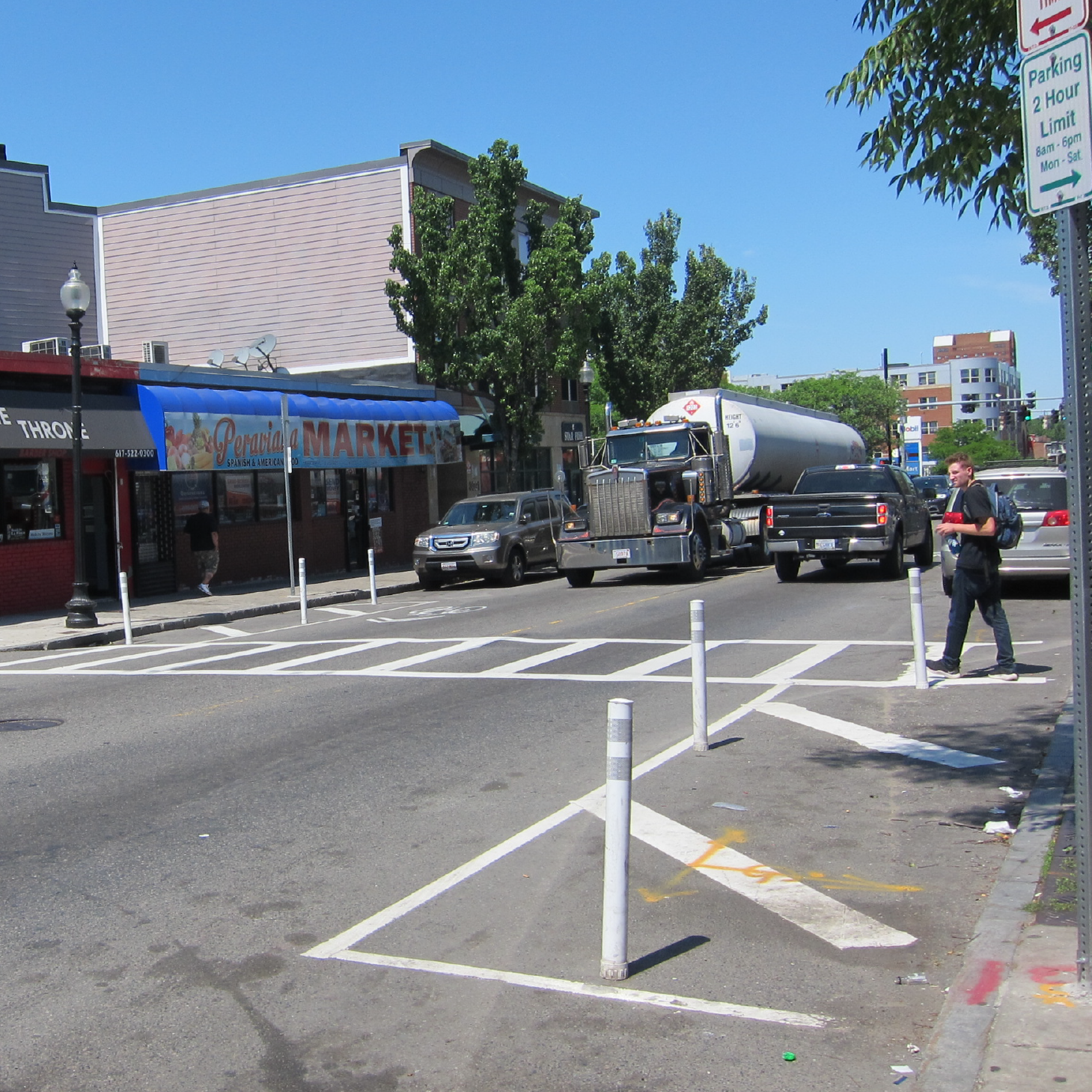 We generally do not propose raised intersections across busier streets or streets with MBTA bus routes.