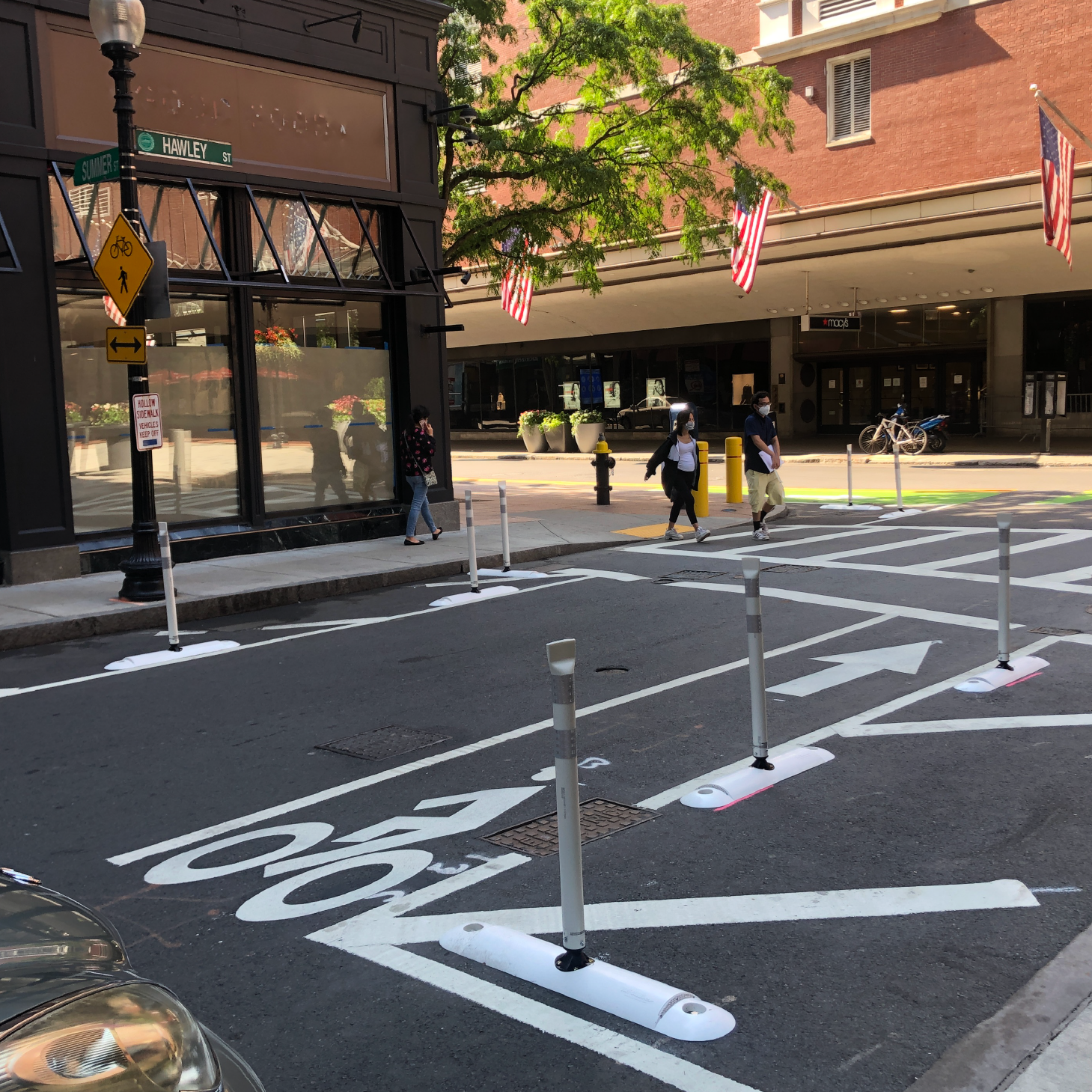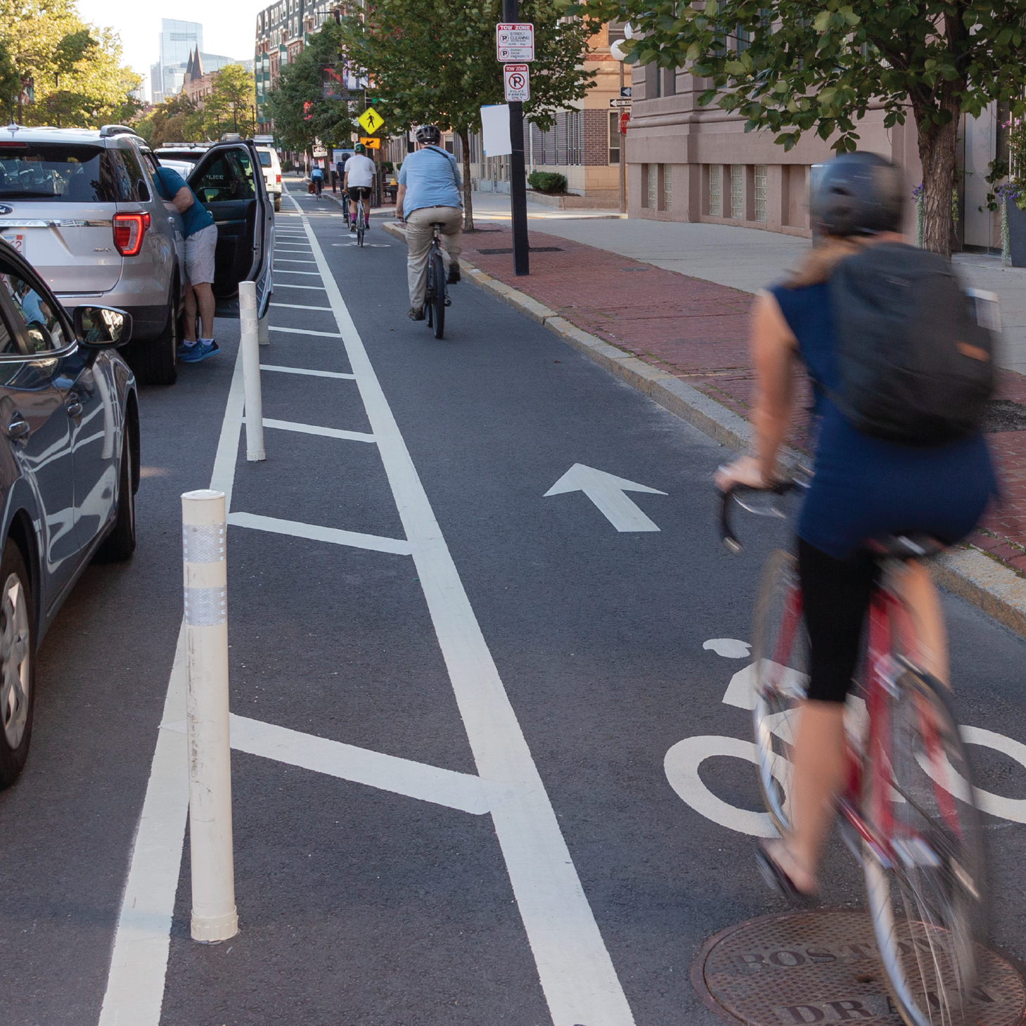 Streets with dedicated space for people biking, separated from sidewalks and general travel lanes, are safer for everyone. Separated bike lanes provide more space and vertical separation between people on bikes and people in cars. More people are comfortable biking in separated bike lanes than in traditional bike lanes or in traffic with cars, buses, and trucks.