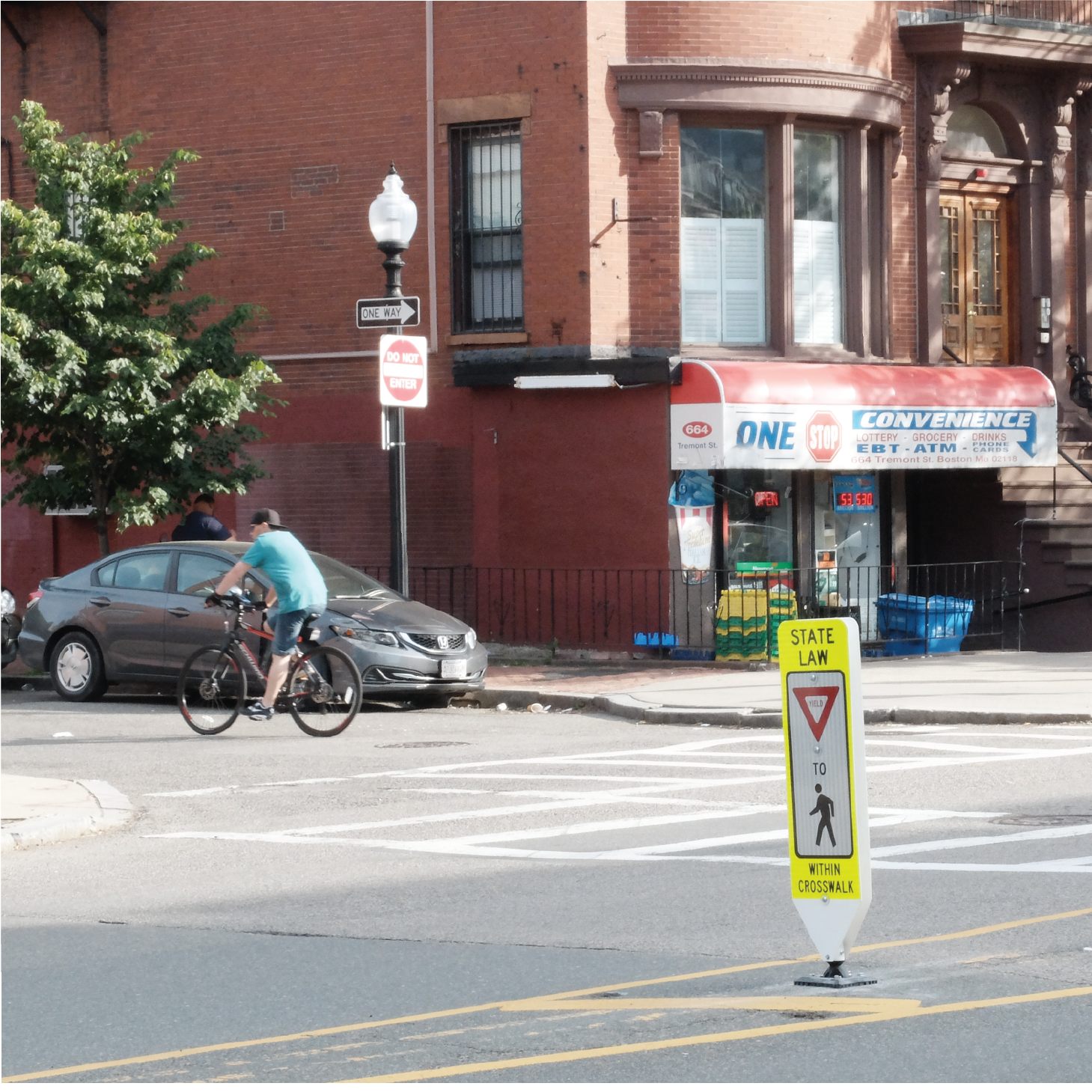 These signs provide even more notice to drivers as they approach crosswalks. Signs rely on people to observe and change their behavior.