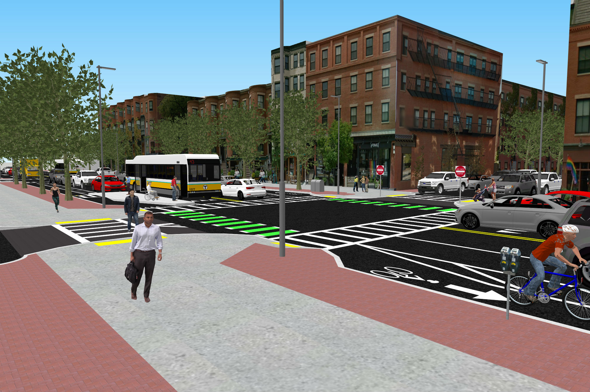 - Raised crosswalks at unsignalized intersections along Tremont Street, including new drainage where needed