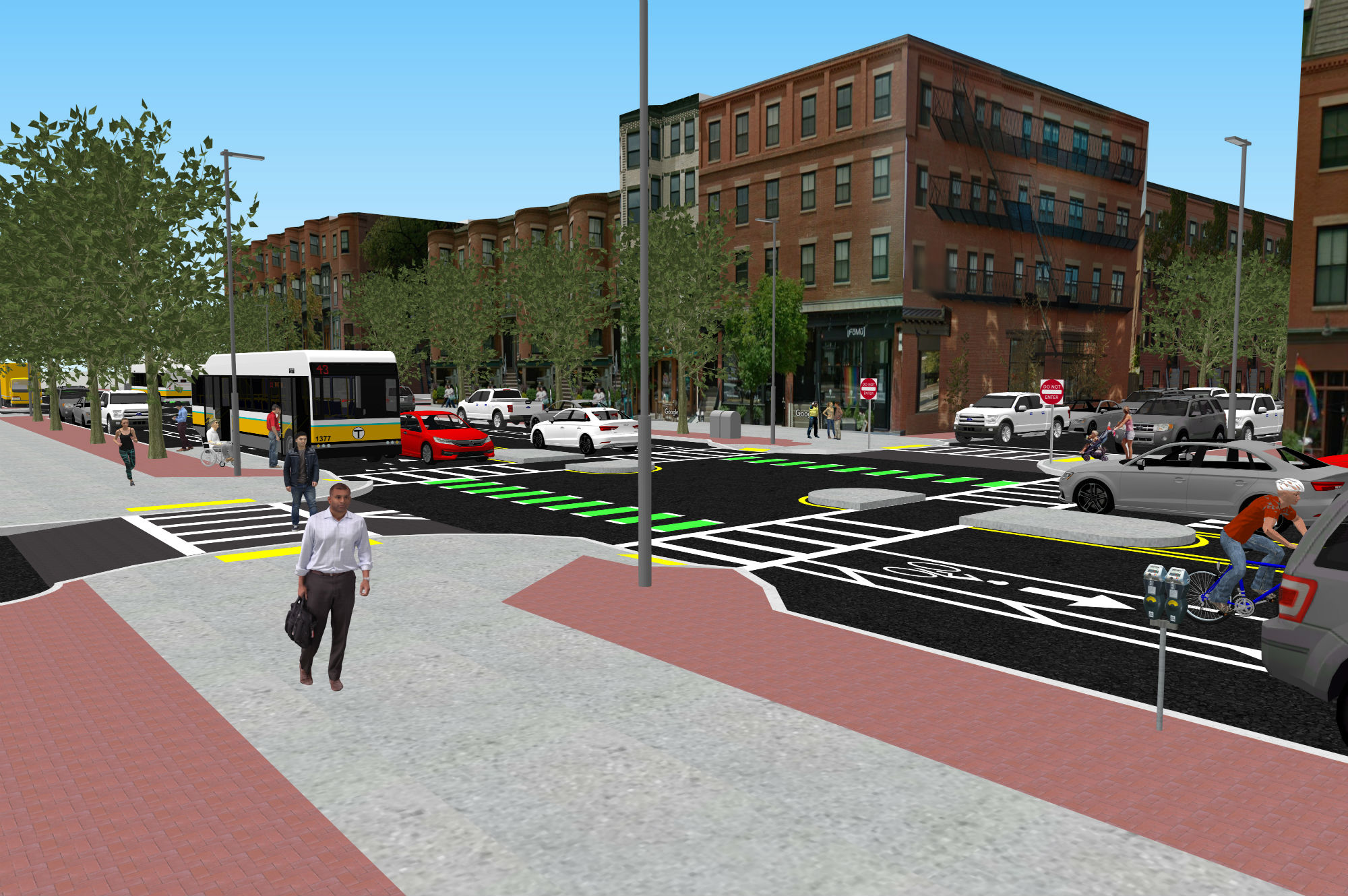 Two fatal pedestrian crashes highlighted the need to rethink Tremont Street. Residents shared stories of near misses when crossing the street on foot. Traffic data confirmed four lanes were unnecessary. We developed the design with extensive community consultation over the course of two years, including residents and businesses. Community members asked for: