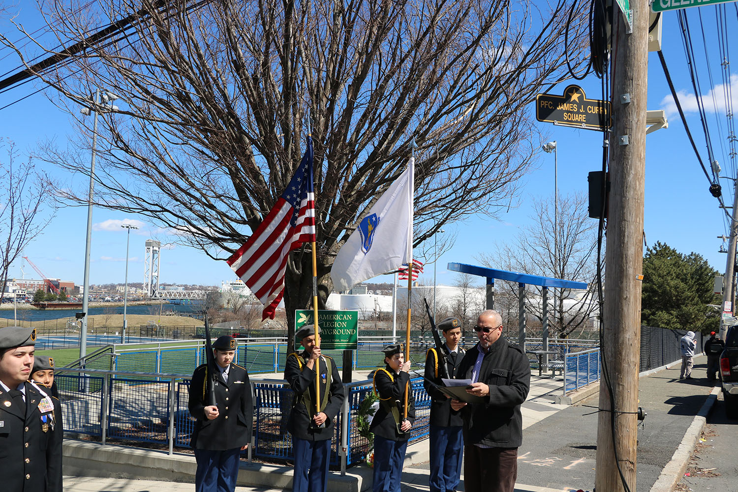 Families of service members killed in action can fill out an application, detailing their loved one’s military service. We work with the Transportation Department and Public Works to install placards.