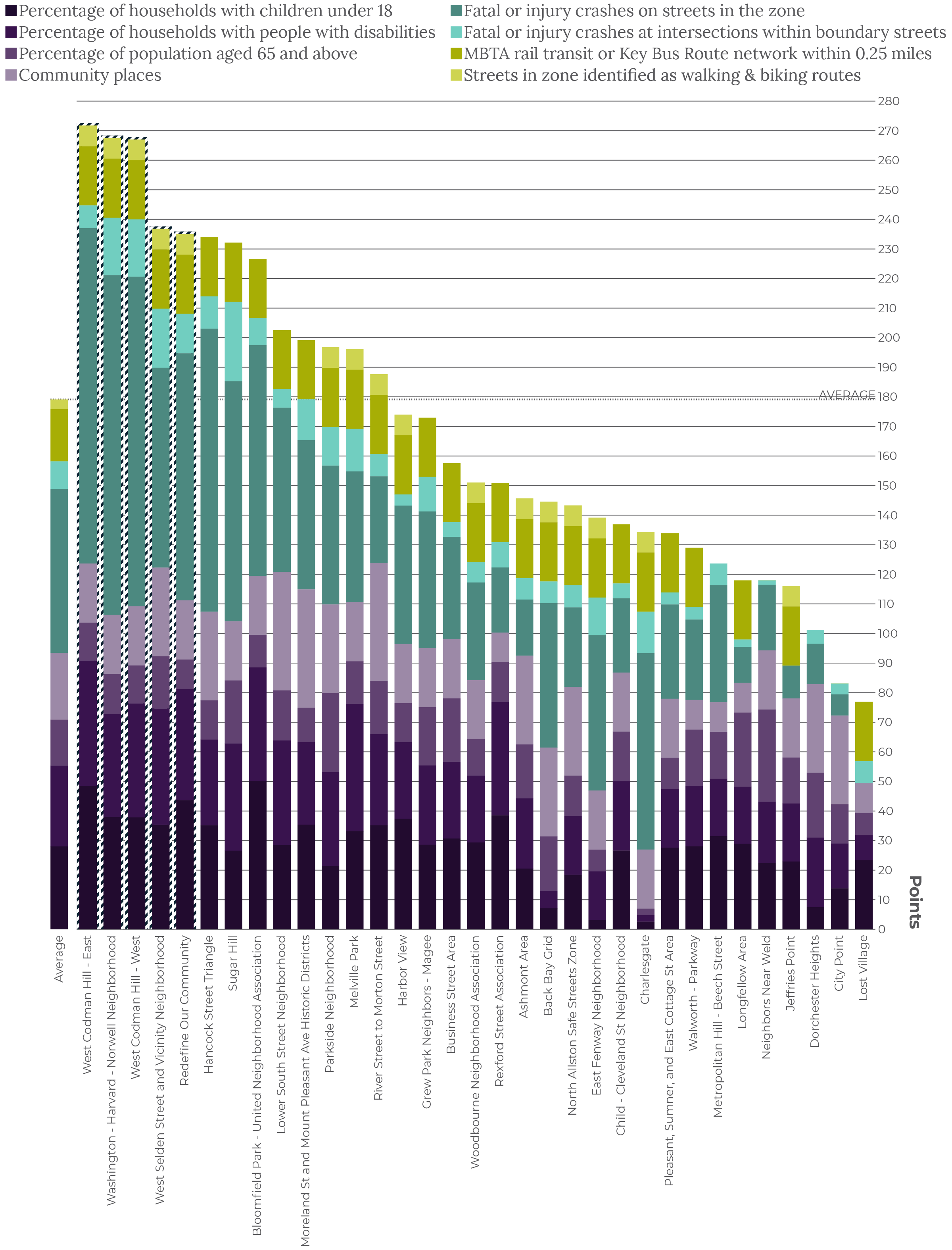 The Boston Transportation Department will continue to work with communities to improve street safety through our other programs and regular work. For example, we plan to work on improved crosswalks at key locations in zones that scored well but were not selected this year.