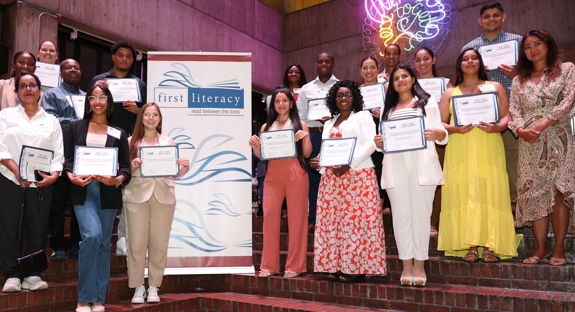 Every year, First Literacy awards scholarships to recent graduates of Adult Basic Education (ABE) or English language programs in Massachusetts who are continuing on to vocational training or higher education. On August 15, 2024, the City of Boston and Mayor Michelle Wu proudly hosted the 2024 First Literacy Scholarship Ceremony at Boston City Hall. This special event celebrated 26 adult learners awarded First Literacy Scholarships for the 2024-2025 school year.