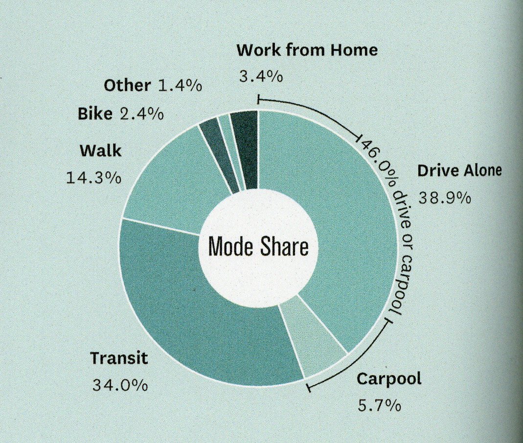 In contrast to 1930, about 40% of Bostonians currently drive to work alone. The pie chart below shows how Bostonians currently commute to and from work.