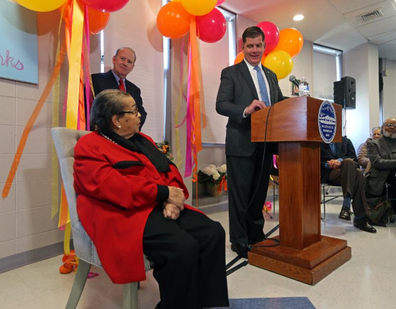 Mayor Martin J. Walsh and Boston Housing Authority (BHA) Administrator Bill McGonagle today unveiled the Doris Buntè Apartments, as they renamed the BHA's Walnut Park development after Doris Buntè, in honor of her advocacy for housing, legislation, and policy work for those in need.