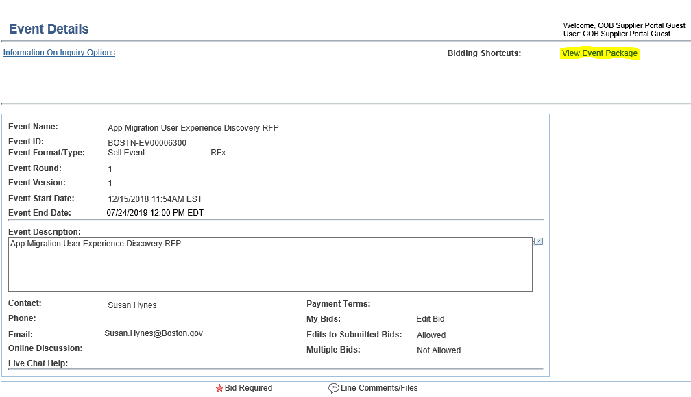 There is a link on the RFP that says, "view event package.” That link includes all published information, including the RFP itself: