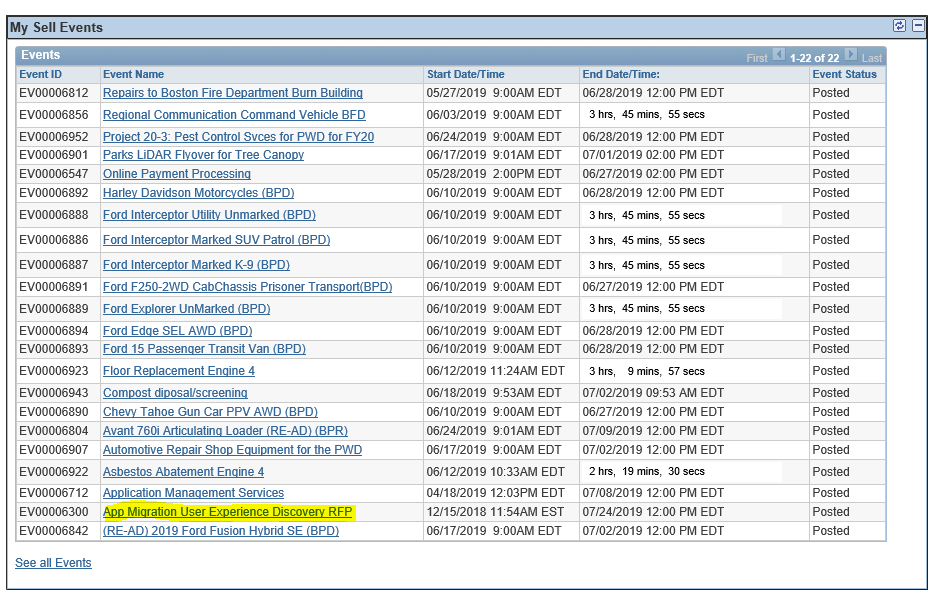 You can find the user experience RFP by searching the event number "EV00006300" and clicking on “App Migration User Experience Discovery RFP”: