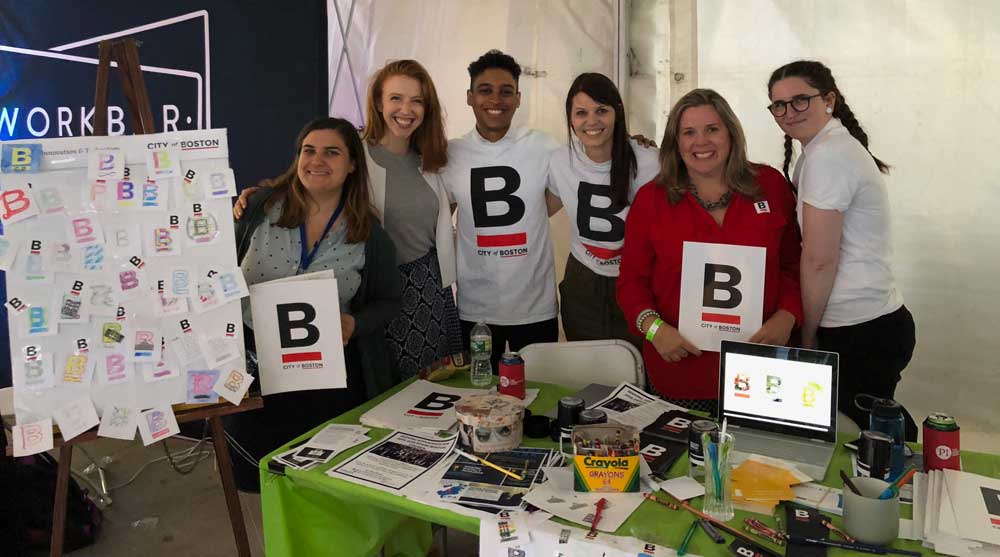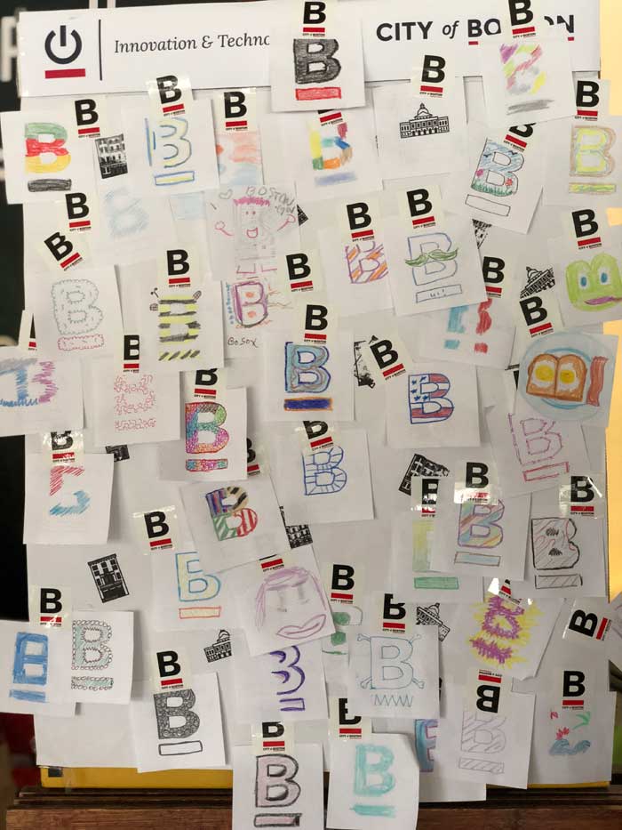 We brought most of our team to the event, as well as plenty of colored pencils, crayons, pens, markers, and cut outs of our “Boston B” logo. This hands on activity led to some really awesome conversations about design, user experience, and — of course — working in City government.
