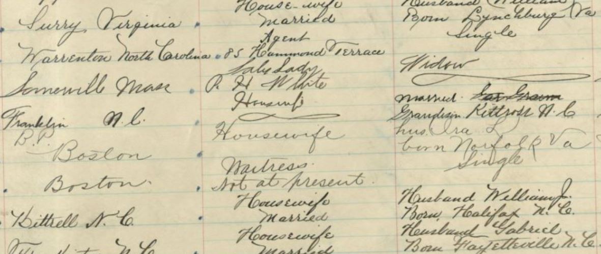 The 1920 Women's Voter Registers now live at the Boston City Archives and document women's names, addresses, places of birth and occupations. Sometimes women provided additional information about their naturalization process to become a US citizen, including where their husbands were born because in 1920, a woman's citizenship status was tied to her husband's nationality.