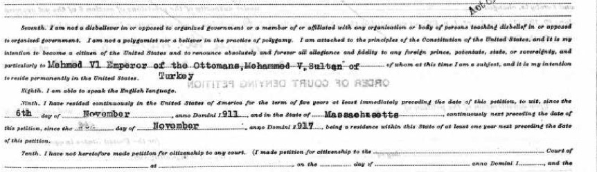 Interestingly, Matthew's naturalization paperwork lists his country of origin as "Turkey." However, in every every other record we found, both Matthew and Nazenig list Matthew's birthplace as "Armenia." This sheds some light on Matthew and Nazenig's ties to their ethnic community and they way they thought about their heritage.