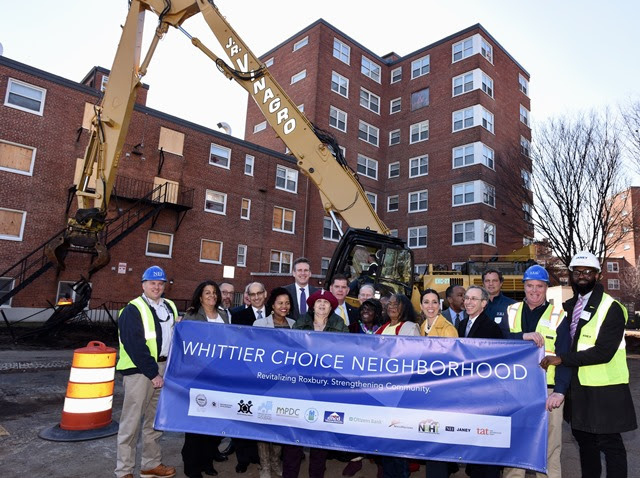 The redevelopment is made possible by a $30 million federal Choice Neighborhoods Initiative grant to the Boston Housing Authority and City of Boston's Department of Neighborhood Development that will leverage an additional $260 million in private and public funds for commercial and residential development and public facilities in the Whittier neighborhood.
