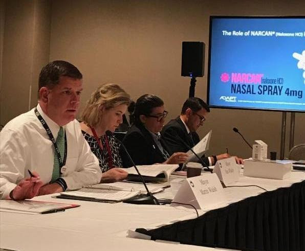 As chairman of the conference's Substance Abuse, Prevention and Recovery Services task force, Mayor Walsh also learned how to issue Narcan® (naloxone) and share examples from much of the nation-leading work that the City of Boston has undertaken to address the opioid crisis, dating back to 1978 when Boston EMS paramedics first began administering the overdose reversal drug.