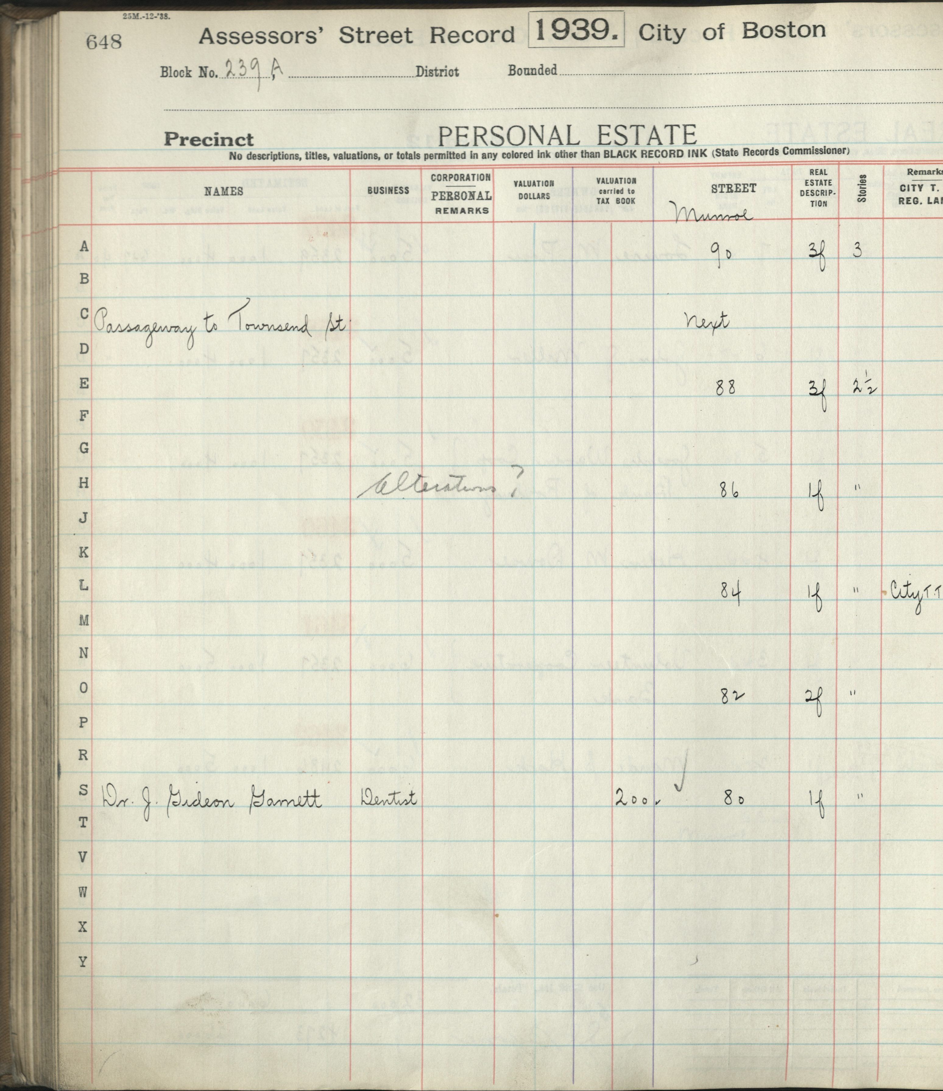 Jessie did find her own patients. After graduating in 1920, she set up her own practice on Tremont Street. At first, business was slow, but she built up a clientele. She successfully practiced in Roxbury for almost 50 years. The tax record below shows Jessie’s practice located at 80 Monroe Street in 1939.
