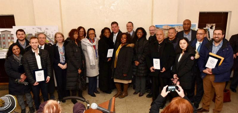 Building on his commitment to create and preserve affordable housing in Boston, Mayor Martin J. Walsh today announced more than $26 million in new and recommended funding from the Department of Neighborhood Development, the Neighborhood Housing Trust, and the Community Preservation Fund, to create and preserve 515 units of housing in Brighton, East Boston, Dorchester, Mattapan, Mission Hill, North End, and Roxbury. The new funding will also contribute to affordable housing programming like the Acquisition Opportunity Program and the Boston Home Center.