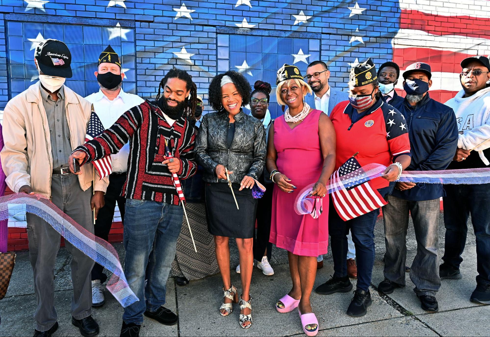 "It was a pleasure working with the BPDA, the community group and Sobek on this creation of peace, family and Community,” said Mary-dith Tuitt, Commander of the Wm. E. Carter American Legion Post 16. “The members of the Carter Post 16 were able to watch the birth of his vision from brick wall to Stars and Stripes. And they both portray the passion of service to the public and respect for the military "
