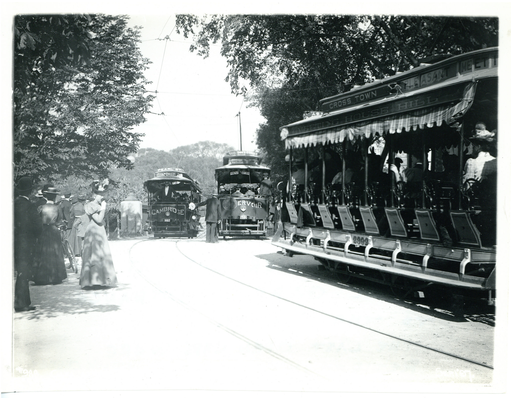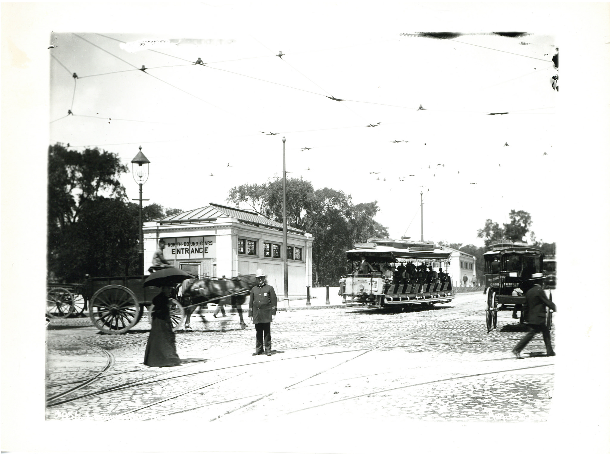 Sections 1-3 of the Tremont Street subway opened to the public on September 1, 1897. These sections were between the Public Garden and Park Street Station. The photograph below shows passengers waiting at the Public Garden entrance on opening day. The rest of the subway opened in 1898.