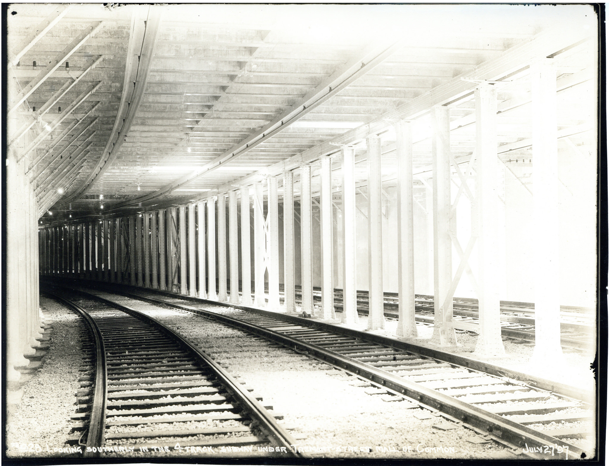 On July 27, the Boston Transit Commission took this photograph to survey progress on the Tremont Street subway.