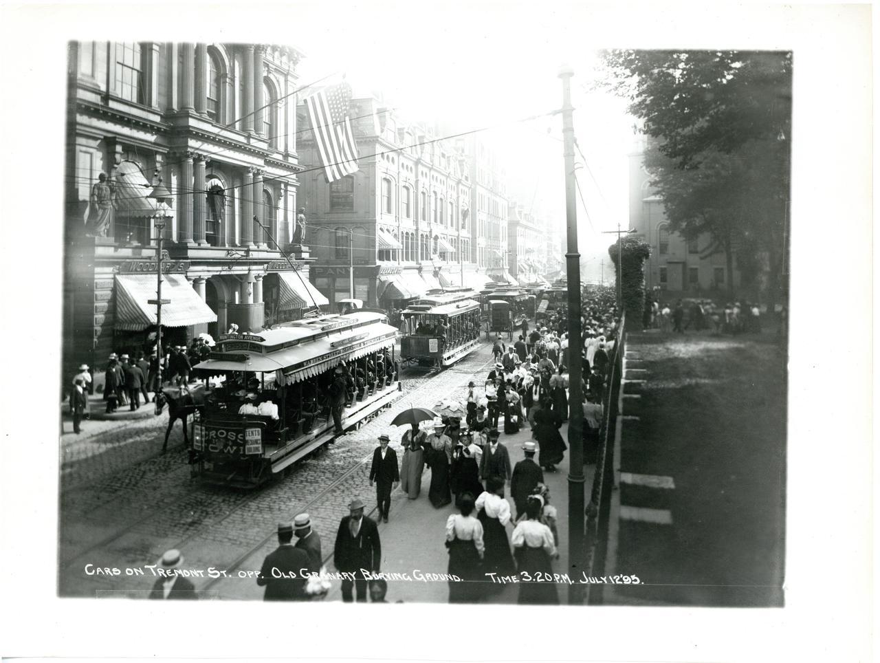 Tremont Street was packed even during the middle of the day. The below photograph shows Tremont Street at 3:20 p.m. on July 12, 1895.