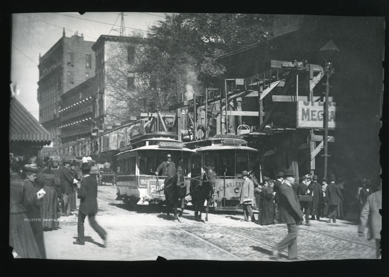 Boston experienced rapid growth in the latter part of the 19th century. A population and building boom led to increasing congestion in Boston’s streets. Streetcars added to this congestion. The above photo shows crowds and drawn street cars on Tremont Street in the early 1890s.