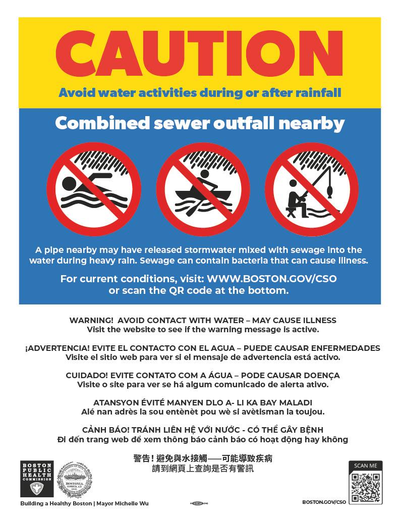 BOSTON—October 14, 2022—The following is a public health warning related to a recent sewage discharge, also known as a combined sewer overflow (CSO). State regulations require local public health departments to provide notice to the public when these discharges may create a risk to public health, including when a discharge lasts for more than two hours.